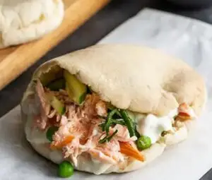 Tartarkastiketta, sitruunaa, salaattia, sipulia, tomaattia ja jalapenoa